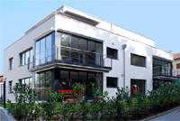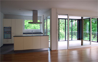 - Klar gezeichneter Baukörper mit ins Volumen intergrierten Wintergärten aus Glas.